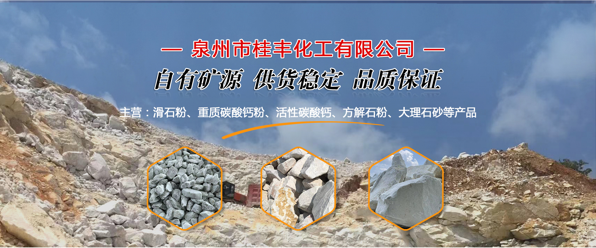 泉州市桂豐化工有限公司是一家有十幾年粉體技術研究和生產經驗的企業,公司集粉體技術開發、礦山開采、粉體生產為一體。主營:滑石粉、重質碳酸鈣粉、活性碳酸鈣、方解石粉、大理石砂等產品。專業生產十大系列10目-8000目石粉產品。得益于優良的礦山礦石資源,我司生產的產品具有白度高,純度高,粉碎充分,粒度分布均勻,化學成份穩定等特點。產品廣泛運用于醫藥、化妝品、食品、鞋材、家裝、造紙、橡膠、塑料、涂料、油漆、油墨、陶瓷、電線、電纜等眾多行業。 經過十多年快速的發展,我司擁有了三個礦石粉生產基地,三十多臺套的生產設備,員工規模達到一百五十多人。多年來,公司堅持以市場為導向,不斷加大科技投入,與國內大學院校,專業粉體研究機構保持常年合作,實行產學研銷一體發展。針對不同行業不同產品客戶的差異化需求,制定一對一的技術支持與生產跟進服務,把“提高客戶產品品質,降低生產成本,實現客戶效益提升”作為公司的服務宗旨。目前,公司產品在國內大部分省份均有銷售,并出口到了國外市場。